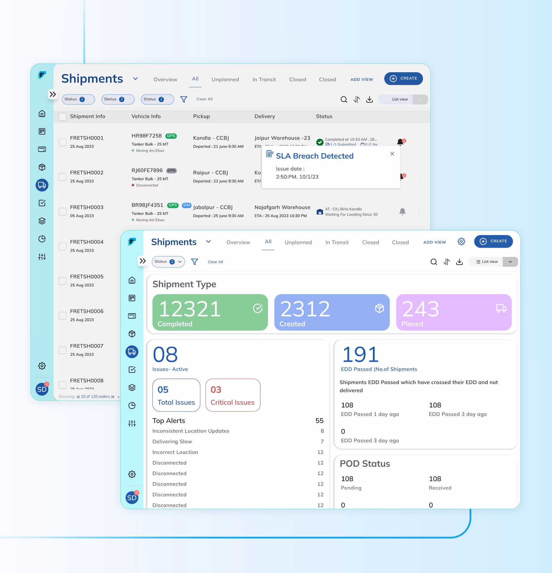 Identify & address issues causing disruptions in your transport network through a comprehensive real-time issue tracking dashboard. Convert critical issues into tickets & allocate them to the right stakeholders for quick resolution.